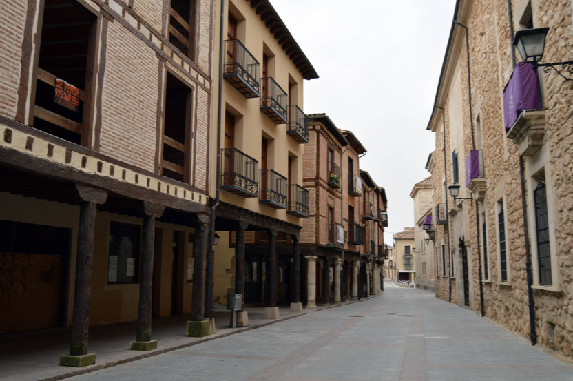 La calle Mayor porticada funciona como eje vertebrador de esta antigua y monumental ciudad episcopal que conserva en su recinto amurallado joyas tan relevantes como el Antiguo Hospital de San Agustín, la Universidad de Santa Catalina, el castillo de Osma o el Palacio episcopal; todas ellas “vigiladas” por una de las grandes maravillas del arte gótico soriano.